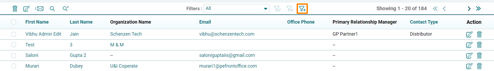 Filters, or views, are used to separate desired records from the stack of other records, and capture them in a different bucket. For instance, you can quickly filter all the records for a sector or sub sector. You can also perform operations on the filtered records like mass edit, delete, sending emails etc.