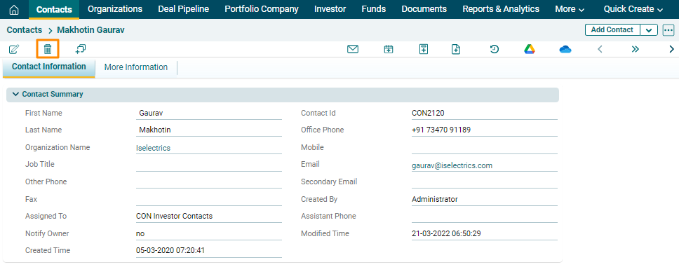 4. The delete popup is displayed. Click on OK to delete the entire record.