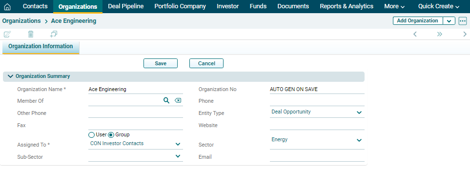 organization in Record View, follow the below steps: