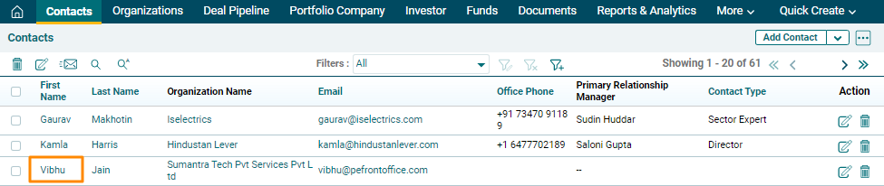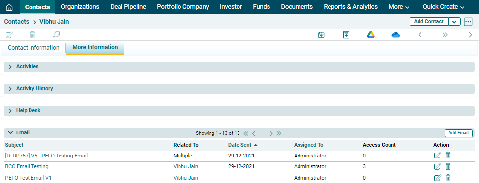 1. Click on Contact to view its corresponding emails.