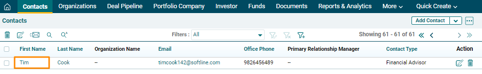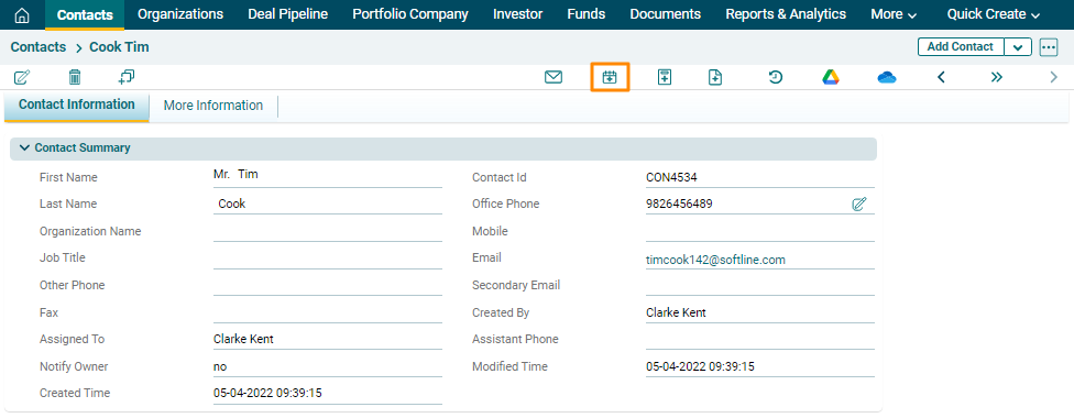 1. Click on a Contact for which event has to be created.