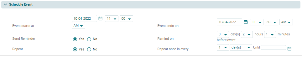 4. In the Schedule Event Panel, specify the