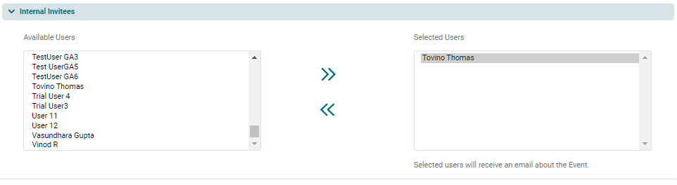 5. Internal Invitees panel allows you to send