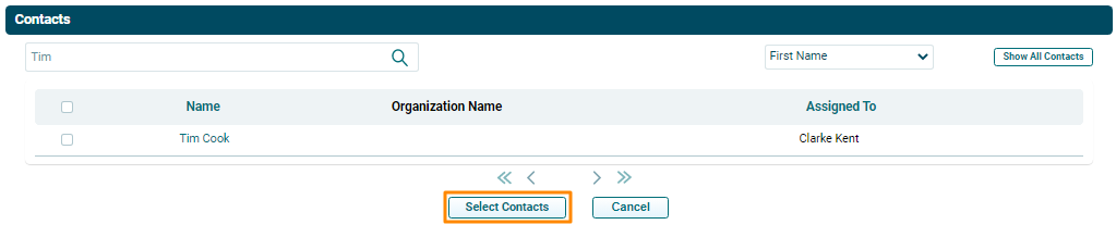 is displayed. Check the box against the name of the desired contact. Click