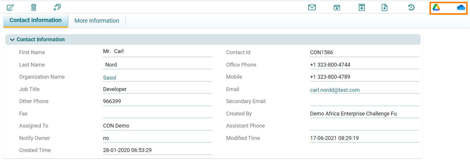 1. Click on Google/One Drive icon on the top right of the record view page.