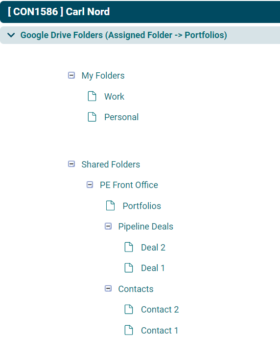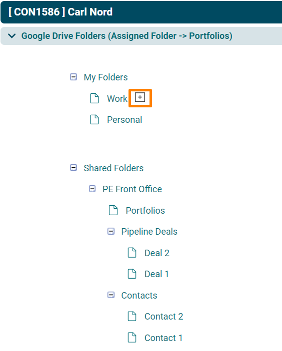 7. Folders can be assigned to the contact record by clicking on the plus icon beside the folder names.