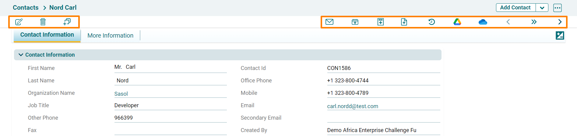- 4. Click Send Mail icon to send email to existing Contact record.