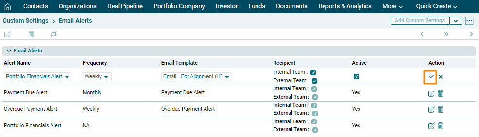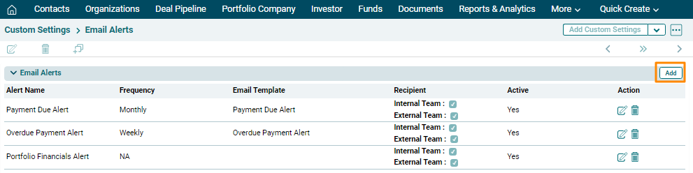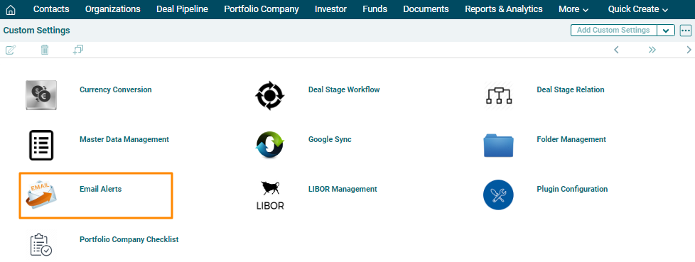1. In Custom Settings, click on Email Alerts.