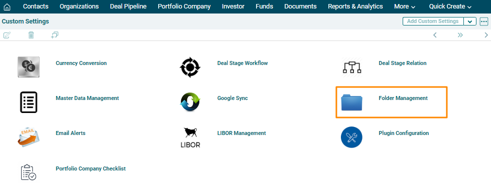 1. In Custom Settings, click on Folder Management.