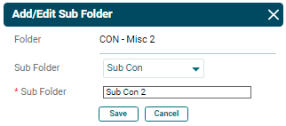 - Sub Folder: Choose a sub folder name if you wish to create a sub folder within an existing sub folder. System doesn’t allow adding a duplicate folder or sub folder with same name.
