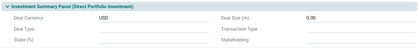 This panel allows you to define the parameters related to Direct Portfolio/Fund Investment.