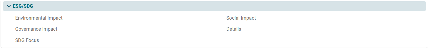 This panel allows you to enter ESG/SDG details about the deal if any.