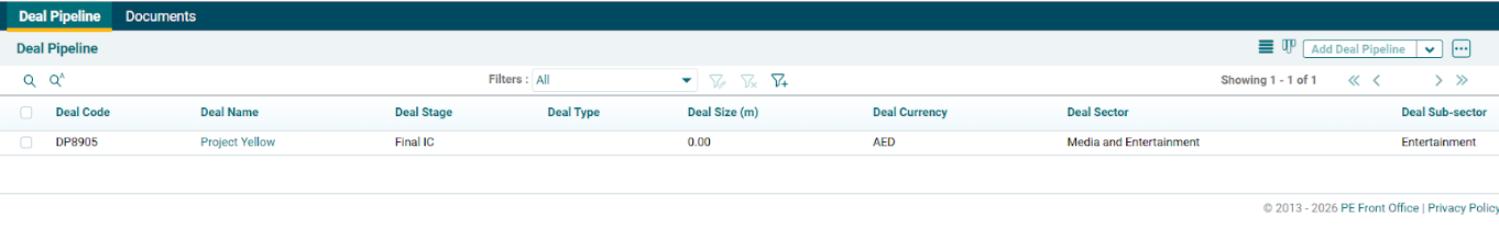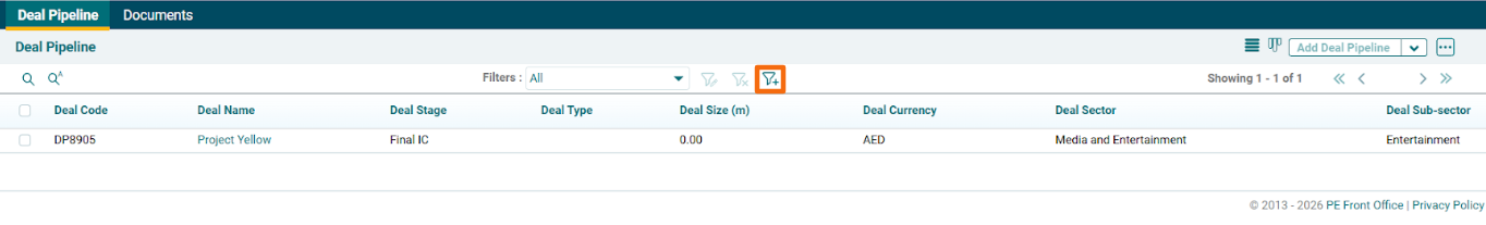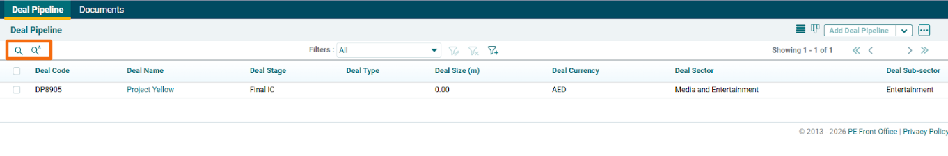 - Search: Click on Search icon to search a specific deal.