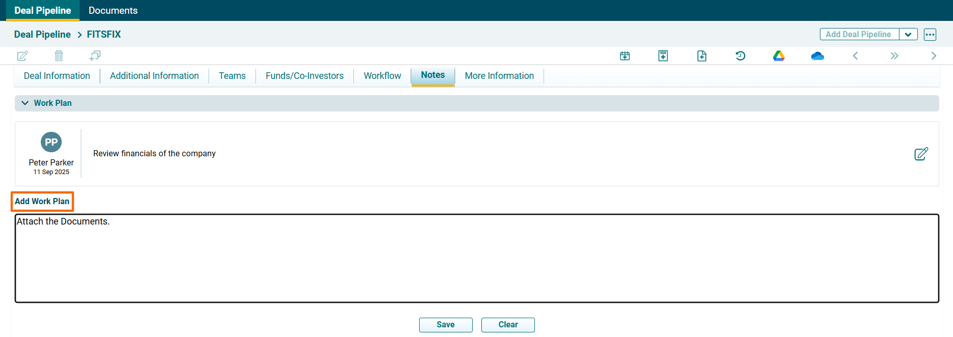 In the Work Plan panel, you can add plans for future work. To modify a work plan, follow the below steps: