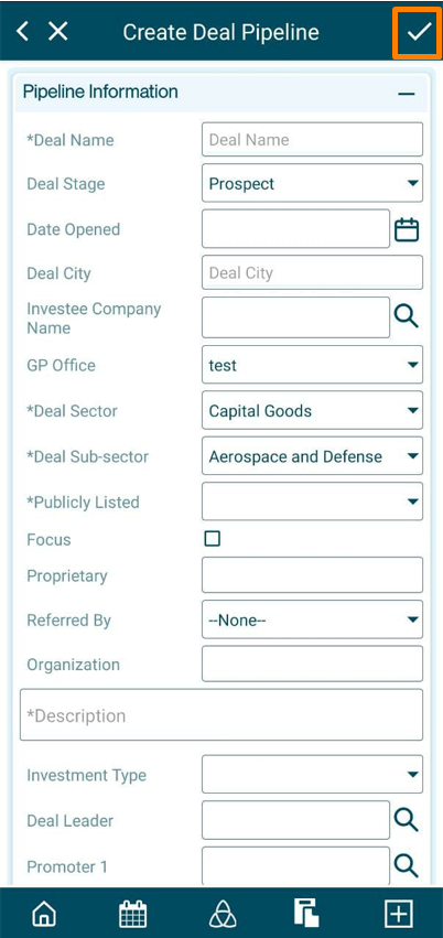 3. Update the mandatory details marked with an asterisk and click on the Tick in the top right corner.