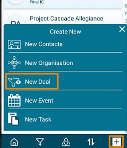 2. Click on the Add sign in the bottom right corner. Click on New Deal.