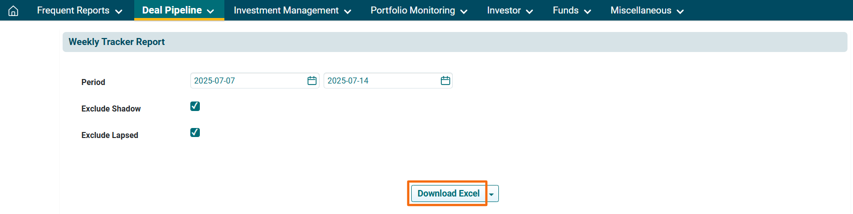 To download a summary of all the deals, you use the Weekly Tracker Report.