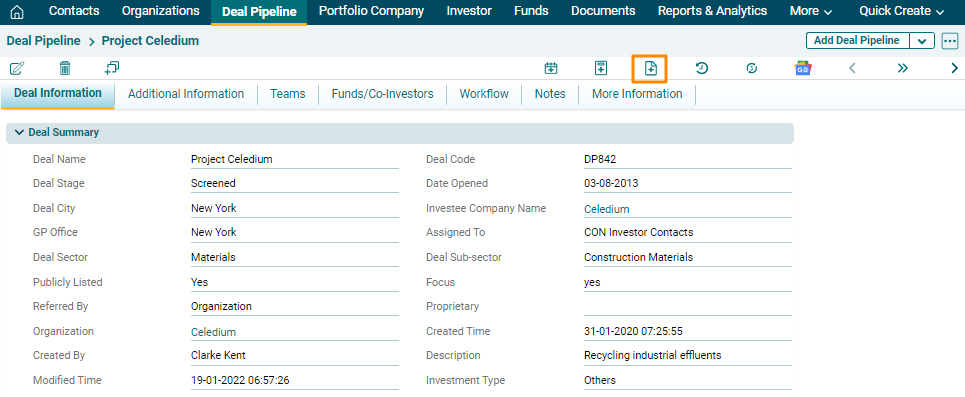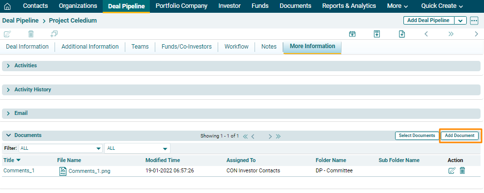 Alternatively, navigate to the More Information Tab and Click on Documents.