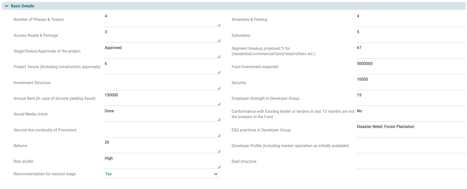 Once the DAF is filled, LIC team will fill up this tab. This tab displays basic and Financial data related to the field. It has two panels which have been described below: