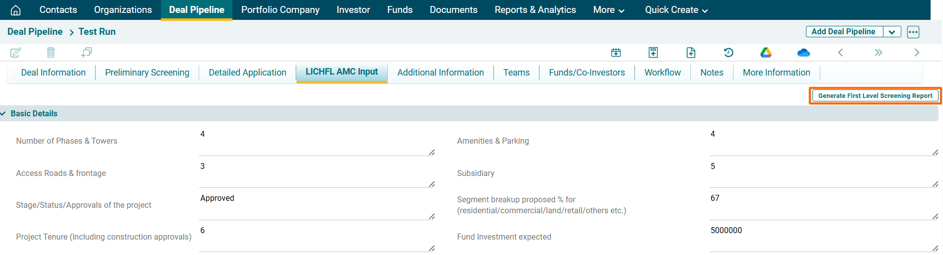 Once the LICHFL AMC Input has been filled, you can generate Preliminary Screening Report. Click on the Generate Preliminary Screening Report button in the top right corner. The report will download in Word format.