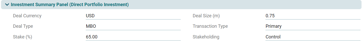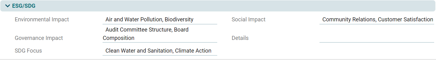 This panel allows you to enter ESG/SDG details about the deal if any.