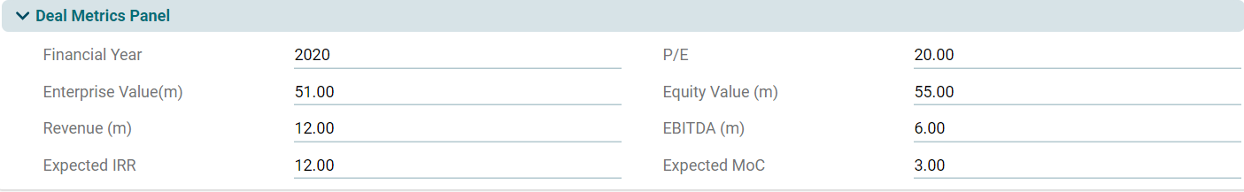 This panel allows you to enter financial data related to the deal.