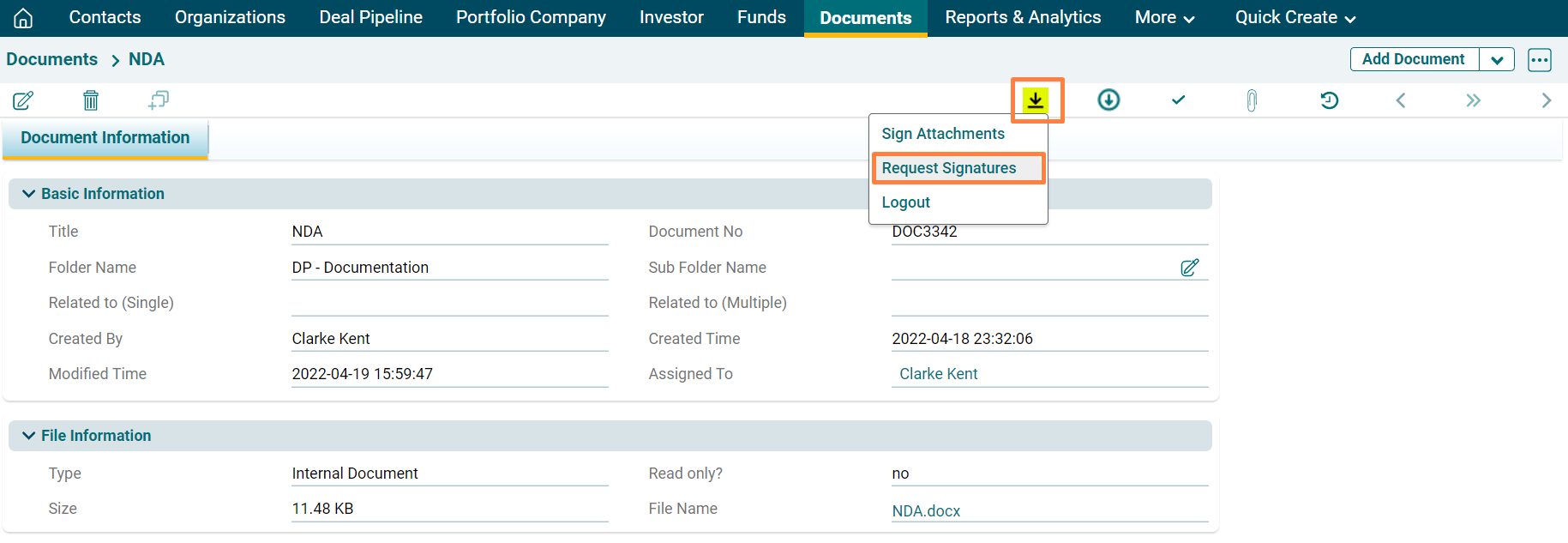 4. Once the document has been signed, the status of the document shall be changed to Signed.