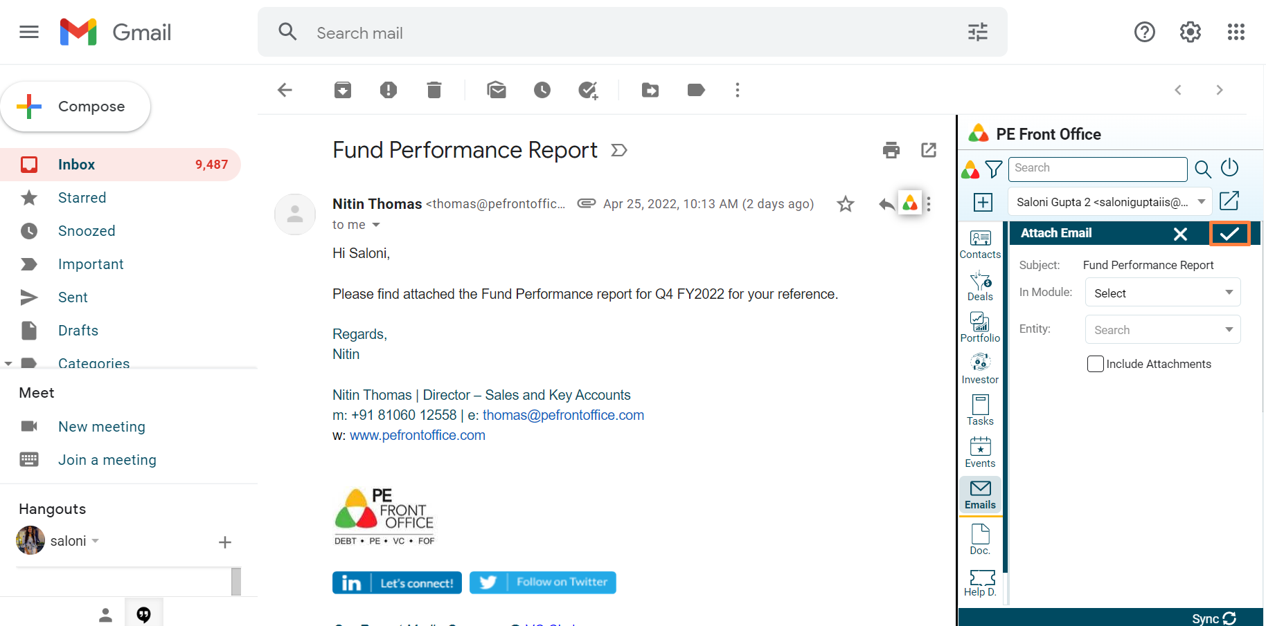 3. Update the details. Click Include Attachments checkbox to attach any documents. Click on Check button to save.