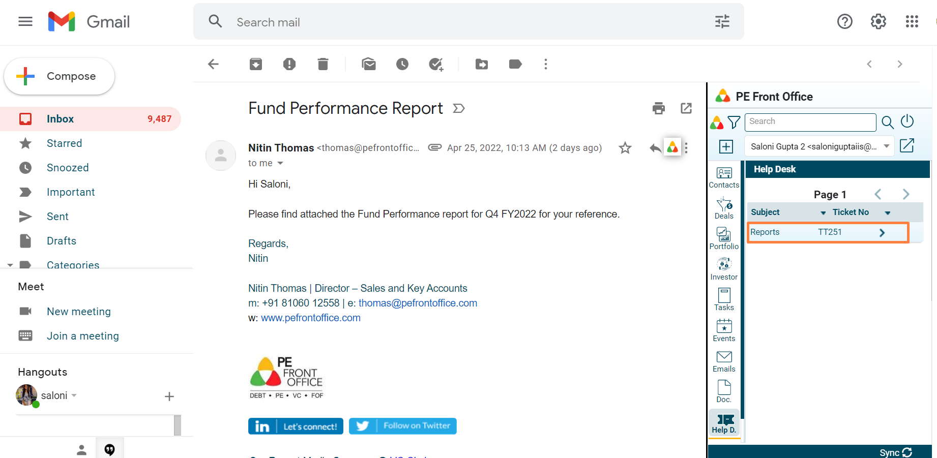 2. The Help Desk window is displayed. Click on a Ticket to view details.