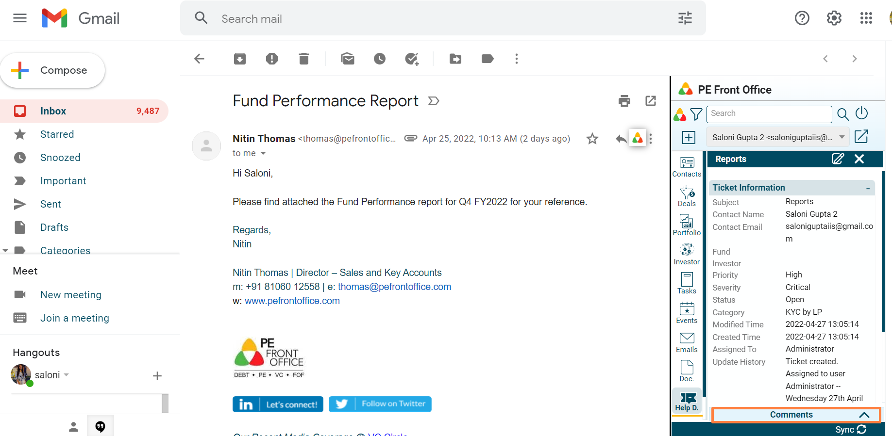 3. Click on Comments button to capture any ticket related comments.