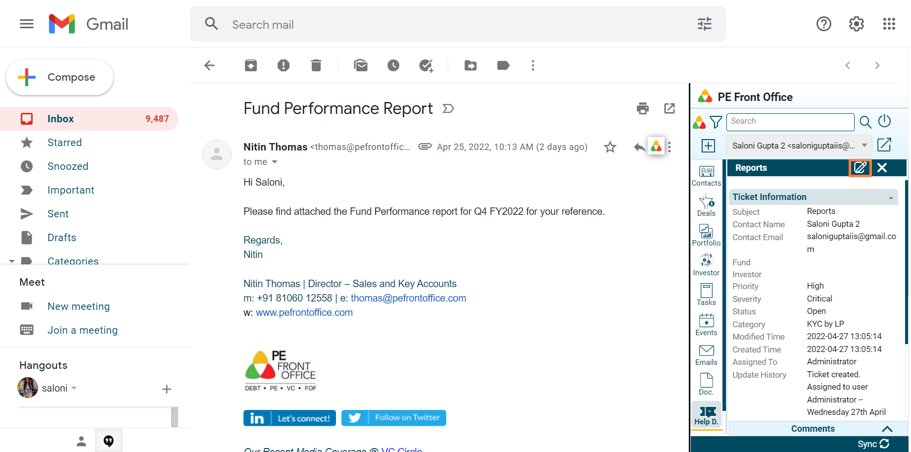 4. Click on Edit button to make changes to the ticket.
