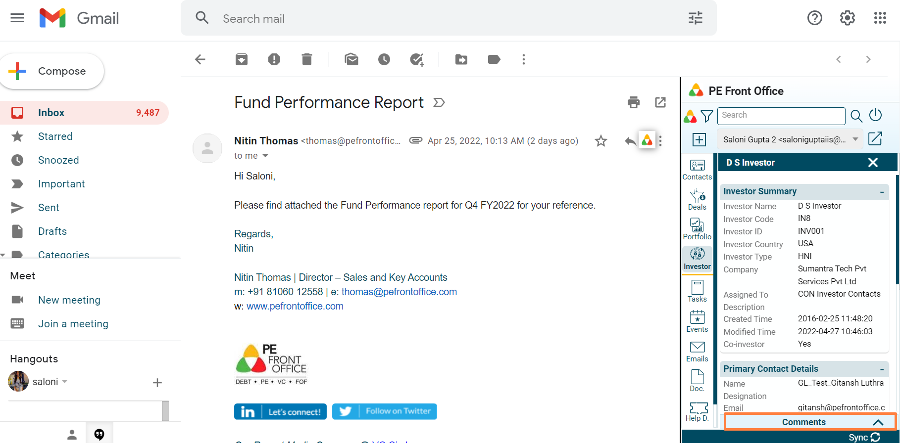 3. Click on Comments button to capture any investor related comments.