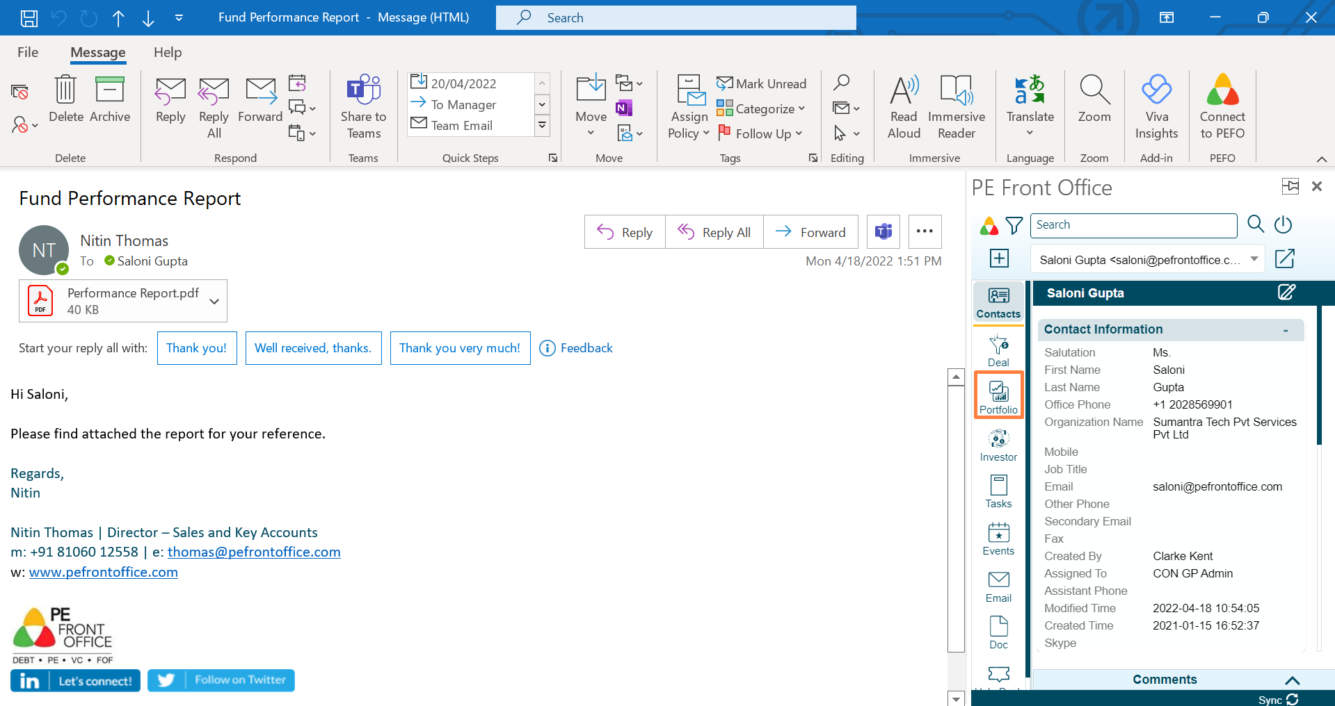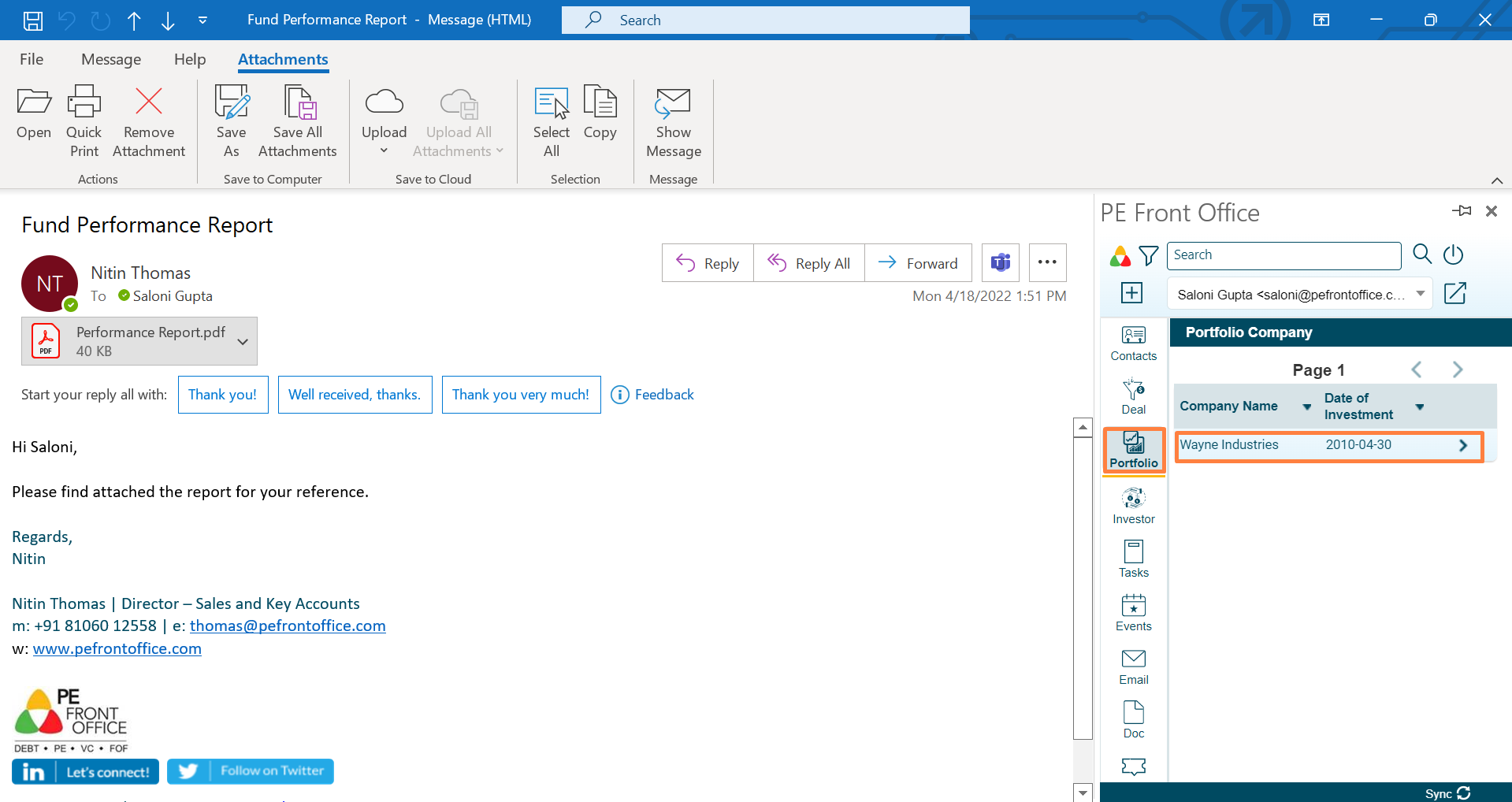 2. The Portfolio Company window is displayed. Click on Portfolio Company Name to view details.