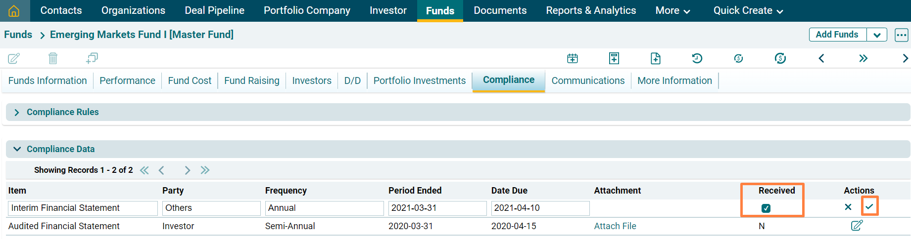 4. Click on Edit () icon in the Action column. Mark whether the file has been received or not and click on Check () button to save.