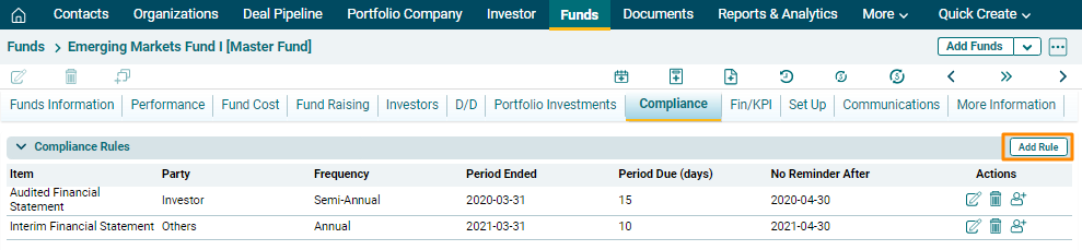 Compliance Rules panel allows you to define rule-based compliance checklists and send alerts to the associated party. You can access the extensive, configurable checklists along with alerts, notifications, and document management. The details included are: