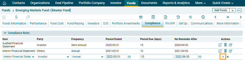 - Frequency: To specify the frequency, i.e. Monthly, Quarterly, Half-Yearly, Annual, or One-Time.