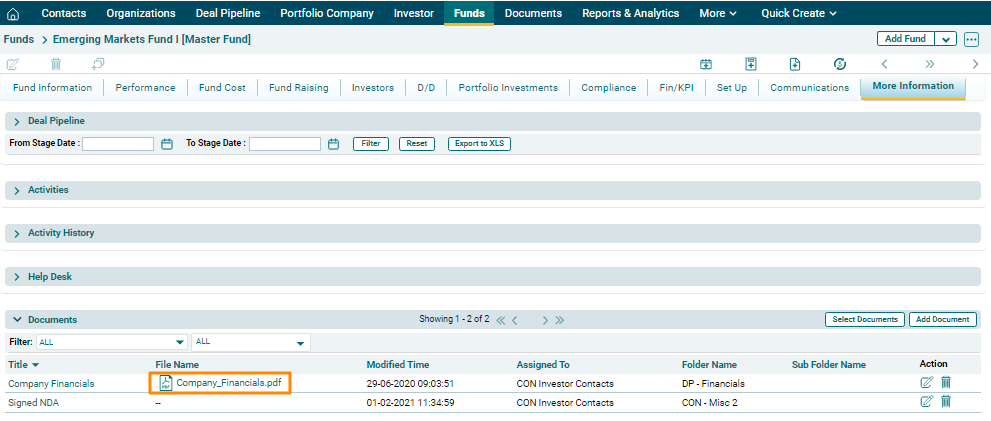 Fund Level Fields