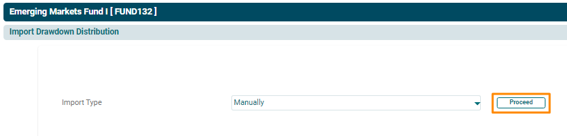 7. The Import Drawdown/ Distribution Manually window is displayed. Enter the following details: