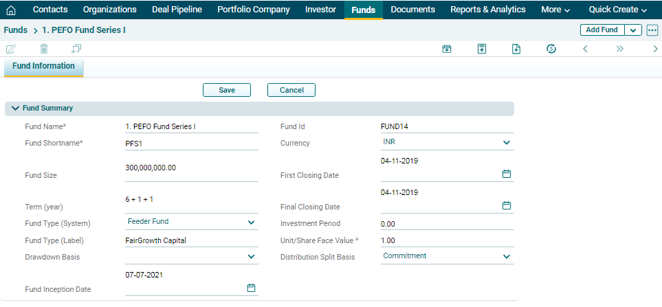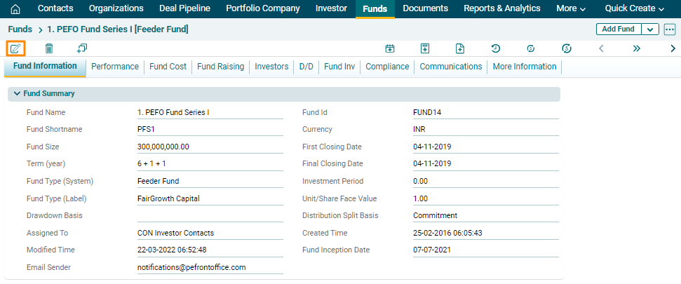 To edit a Fund in Record View, follow the below