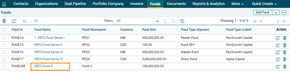 3. The fund is visible on the Funds List View page.