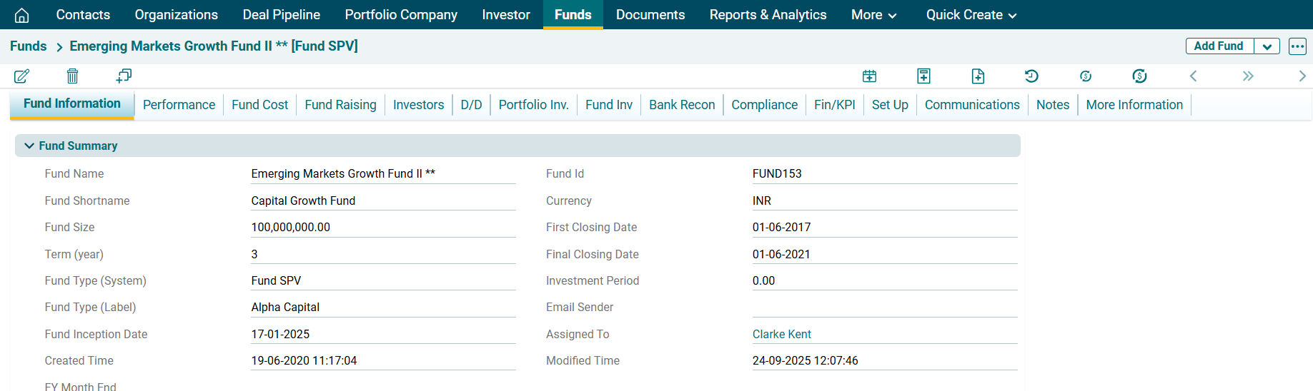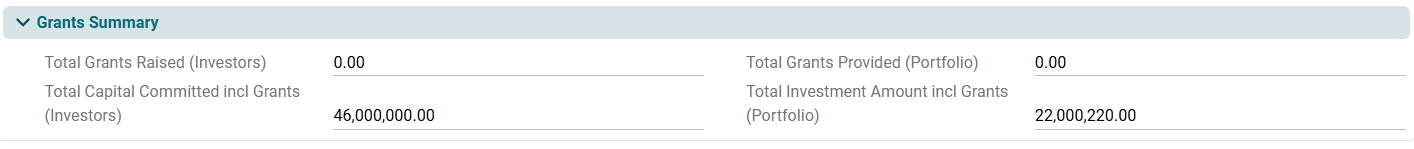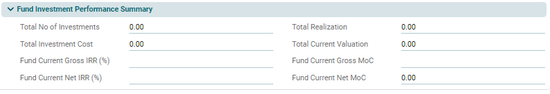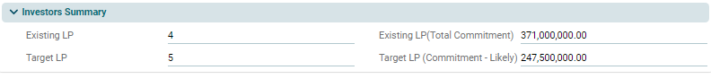 This panel is applicable to all fund types. This panel allows you to view details of the number of investors in the fund and their commitment. This is an auto-populated panel flowing from Fund Raising tab and Investors tab.