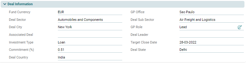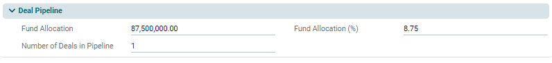 This panel is applicable to Master Fund, Fund SPV, and Fund of Funds. This is an auto-populated panel flowing from Deal Pipeline Module. The graph below the panel depicts the summary in a graphical form.