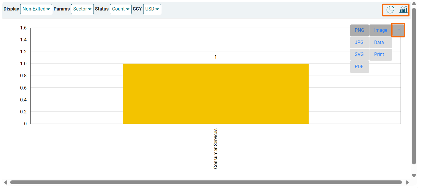 • Params: To view the graph according to different parameters, such as Stage, Sector, Sub-sector, Deal Type, Transaction type, etc.