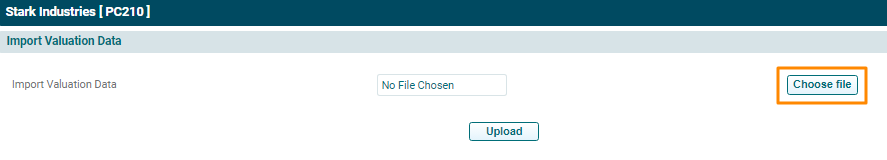 5. Choose the valuation template. Click Upload.