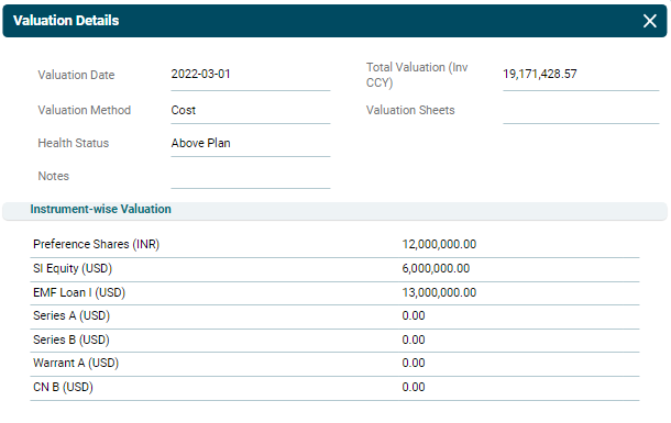 - Health Status: Displays whether the valuation is Above Plan, Below Plan or On Plan.