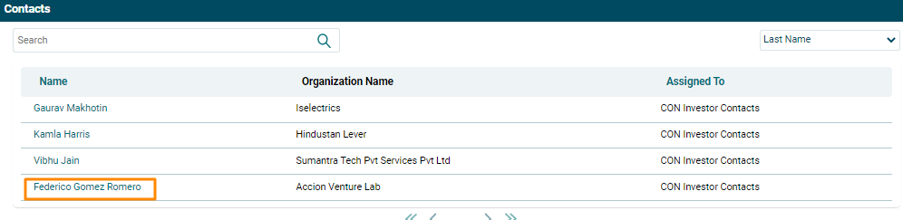 This panel is automatically populated from the Investors Module.