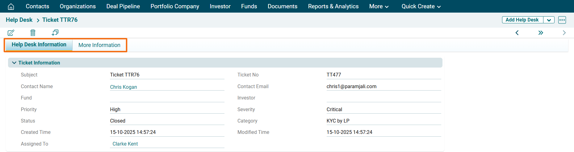 4. Once the ticket has been created, you will see two tabs here: Help Desk Information and More Information.
