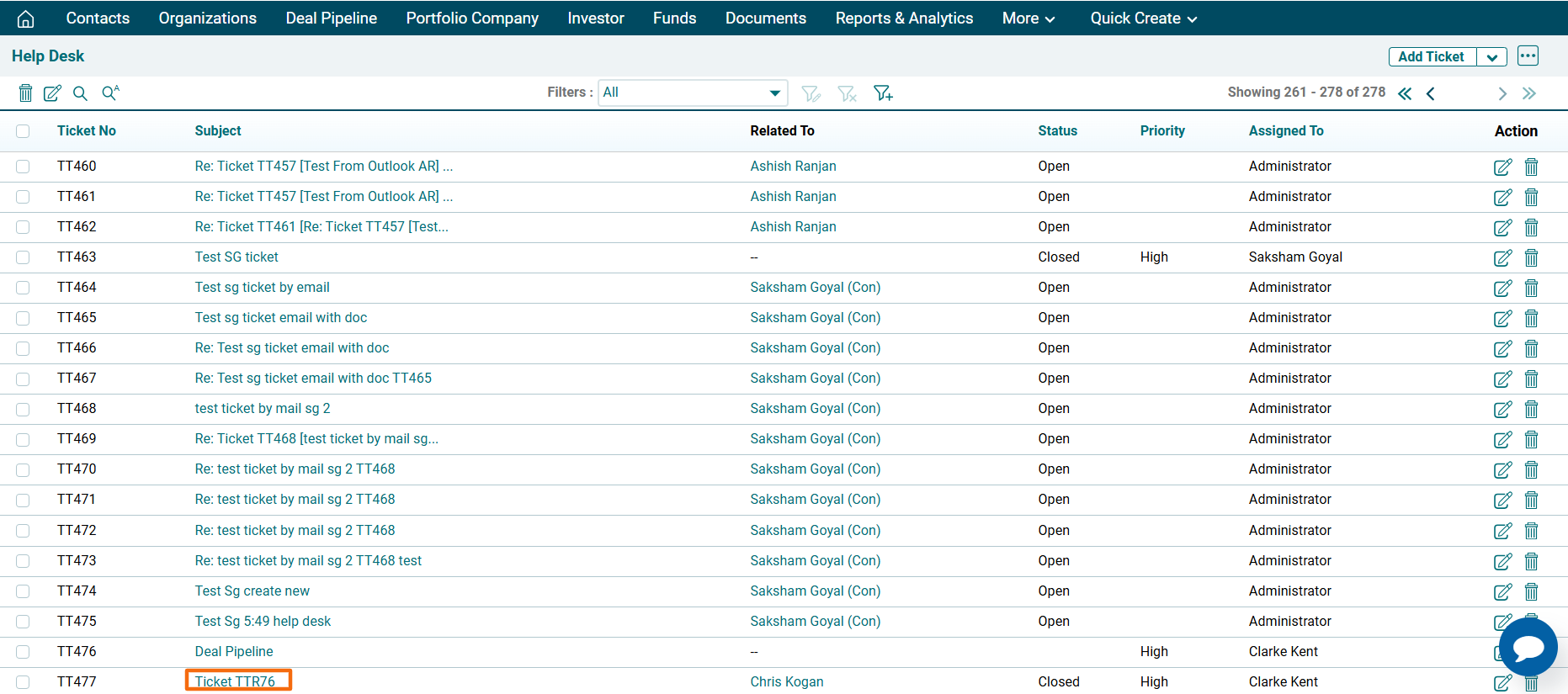) icon. The Investor window is displayed. Type the Investor name in the search box. Use the filters in the top right corner. Click the Investor name. - Priority: Specify the priority, i.e., High, Low, Urgent, or Normal.