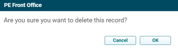4. The delete popup is displayed. Click OK to delete the entire record.