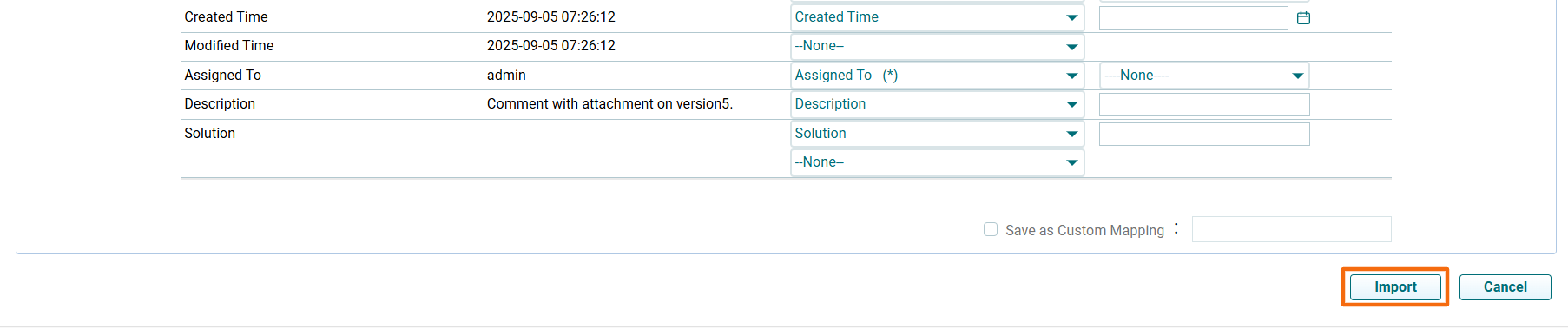 5. The imported data is displayed here. Click Import.